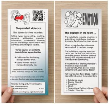DL size handout defining verbal abuse, who does it, and where to get help. On the reverse side is an explanation about the role of unregulated emotions.
